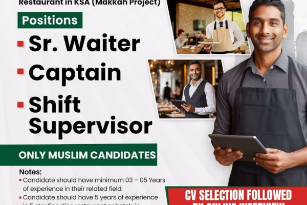 सऊदी अरब जॉब वेकेंसी 2025 के तहत Soundlines Group द्वारा नाम अलथरवत फाइन डाइन रेस्टोरेंट (मक्का प्रोजेक्ट) में नई भर्ती निकाली गई है। यहाँ Muslim candidates के लिए कई पोस्ट खुली हुई हैं: Senior Waiter, Captain और Shift Supervisor। अगर आप सऊदी अरब में होटलिंग या फाइन डाइनिंग का अनुभव रखते हैं, तो ये आपके…